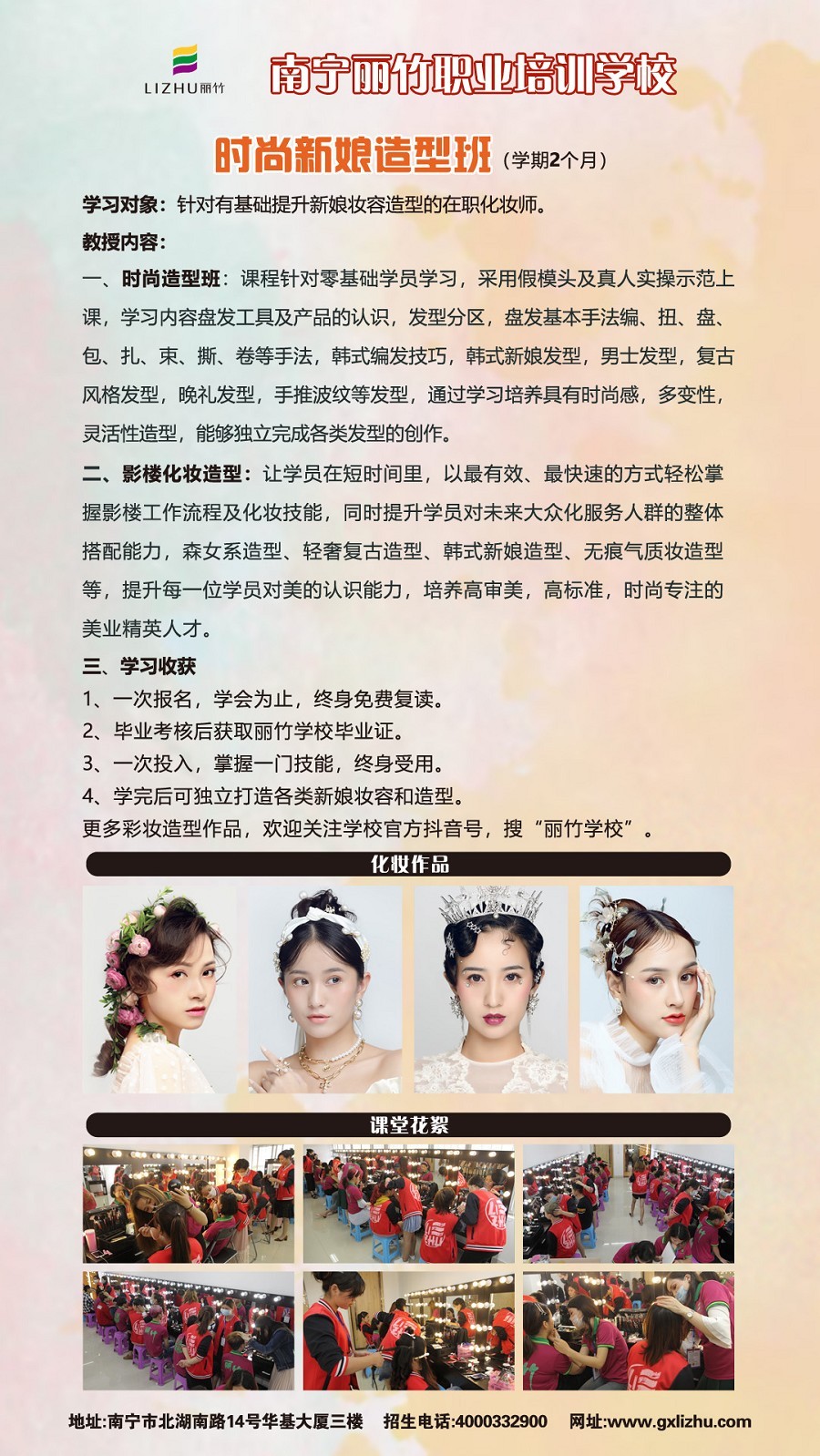 南寧麗竹化妝學(xué)校分享:努力不一定能帶來成功,但是一定能帶來成長。未來的你,一定會(huì)感謝現(xiàn)在拼命的自己!課程報(bào)名現(xiàn)已經(jīng)開啟,有了目標(biāo)的你可以通過以下方式了解課程相關(guān)事宜。