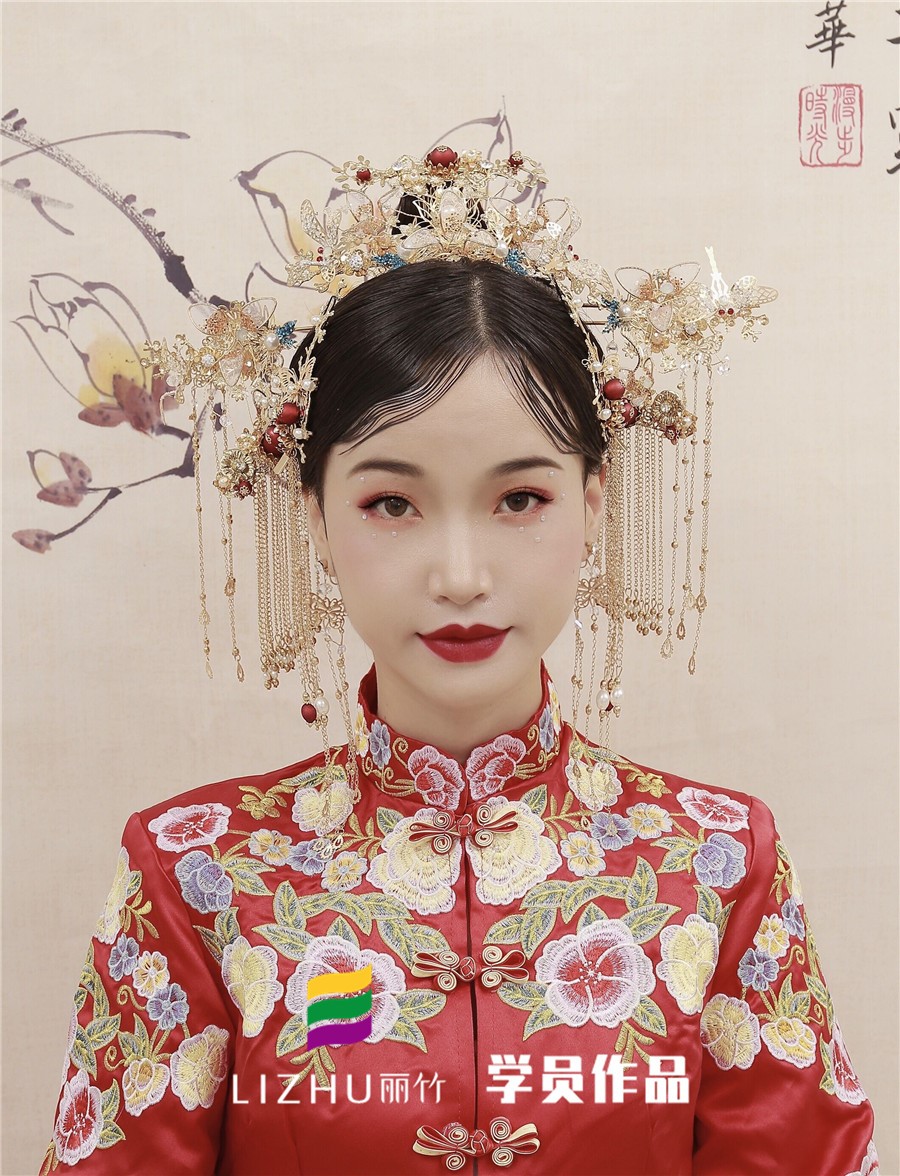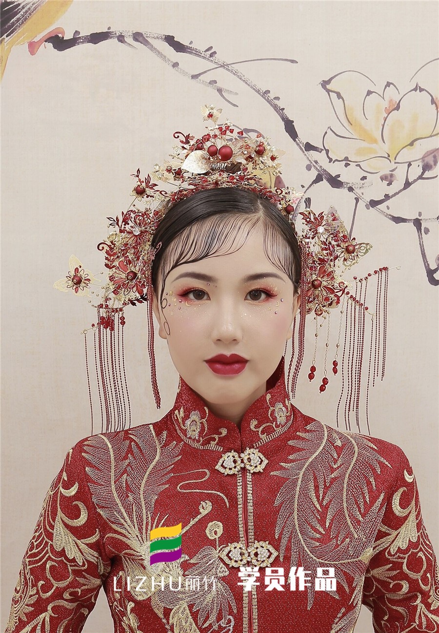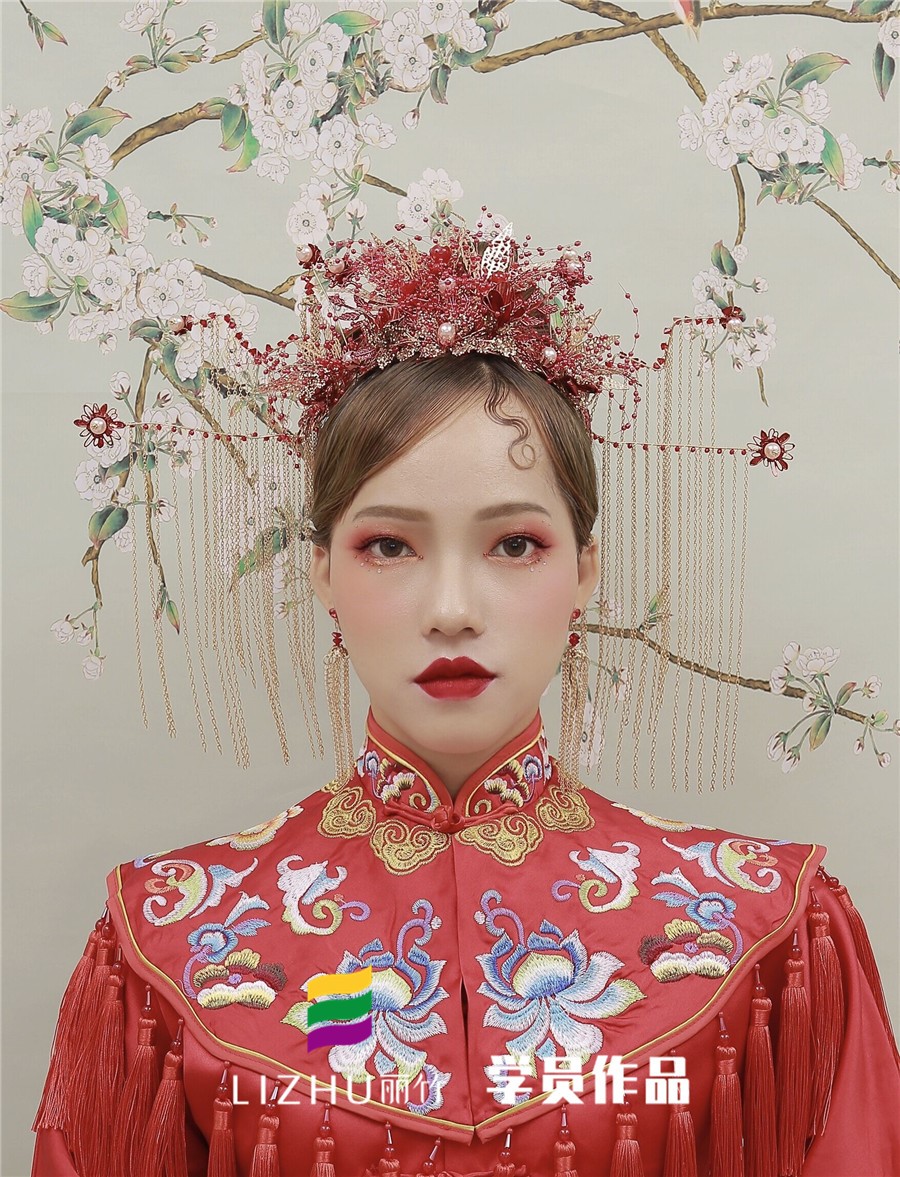 南寧化妝學校分享:雖然都是中式國風的新娘造型,以秀禾為主要服飾,搭配極具中國紅特色的妝容,但仔細一看,還是會發(fā)現(xiàn)在秉承傳統(tǒng)東方魅力的同時,還夾著令人眼前一亮的潮流元素。