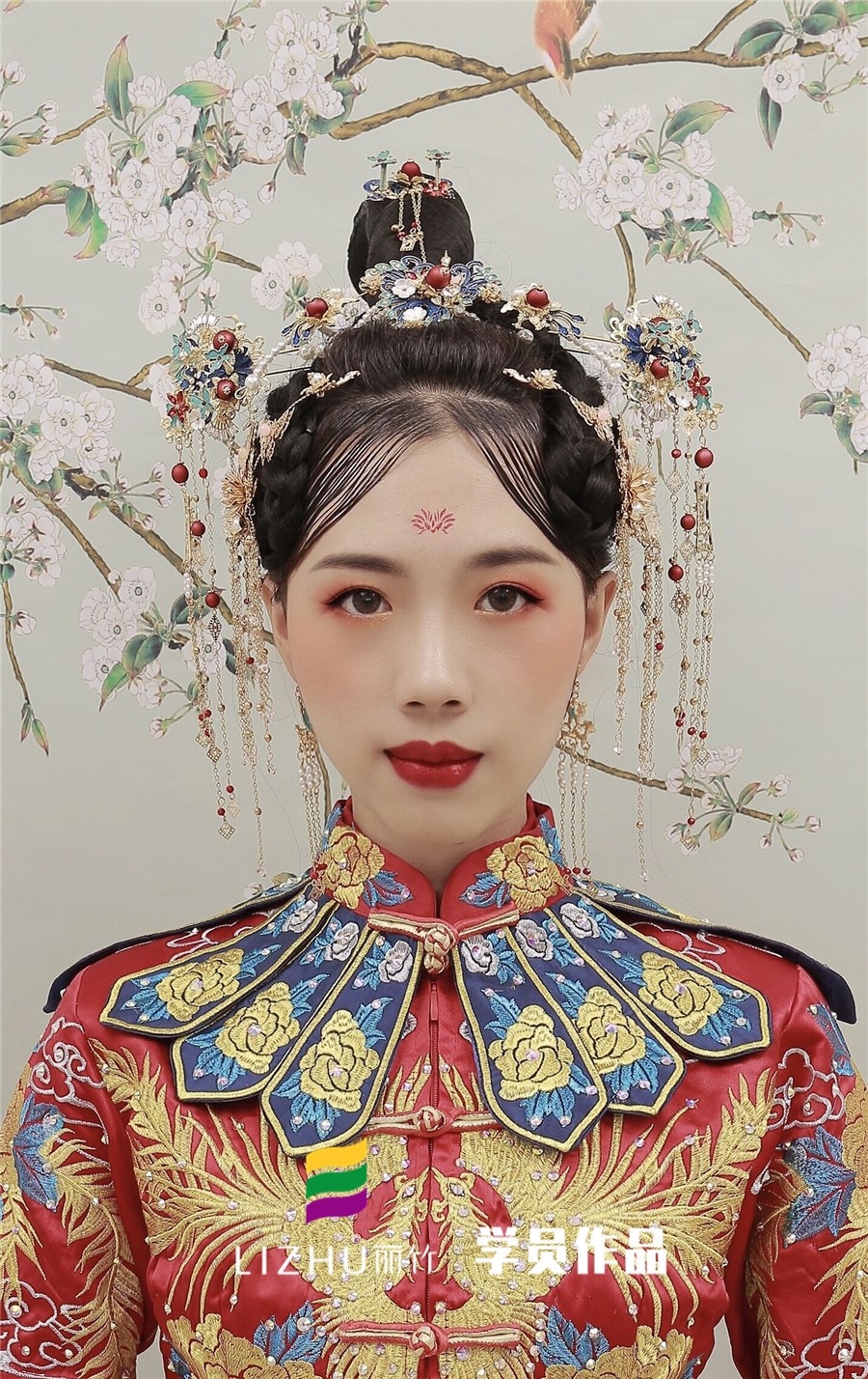 南寧化妝學校分享:裊娜少女羞,歲月無憂愁,中式新娘驚艷的一抹紅,精致典雅,演繹中國風,優(yōu)雅的韓式盤發(fā)搭配精致的發(fā)飾,一身紅裝,正是芙蓉不及美人妝。