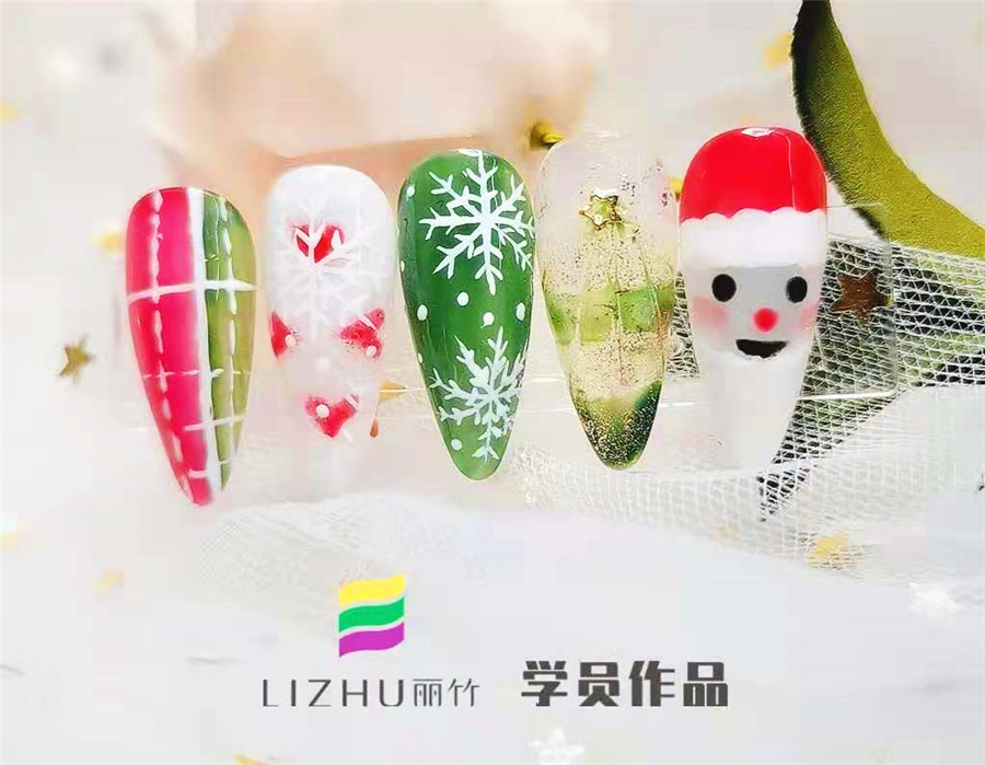 南寧美甲學(xué)校分享:綠色和紅色,雪花和襪子,老人和松樹……這些都是圣誕節(jié)到來的標(biāo)志!為了將這些充滿圣誕元素的物件和人物放在指甲上,廣西正規(guī)美甲培訓(xùn)學(xué)校(麗竹美甲學(xué)校)的學(xué)員們繪制了一些列的美甲作品,現(xiàn)在就來看看有沒有你喜歡的美甲款式吧!