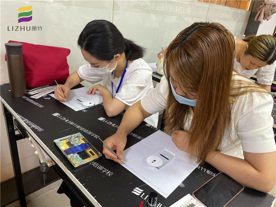 南寧有實力的美睫教學(xué),麗竹美睫培訓(xùn)班---學(xué)員們進(jìn)行美睫紙上練習(xí)