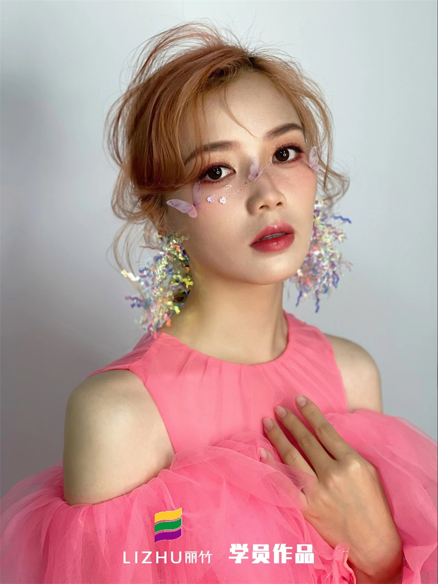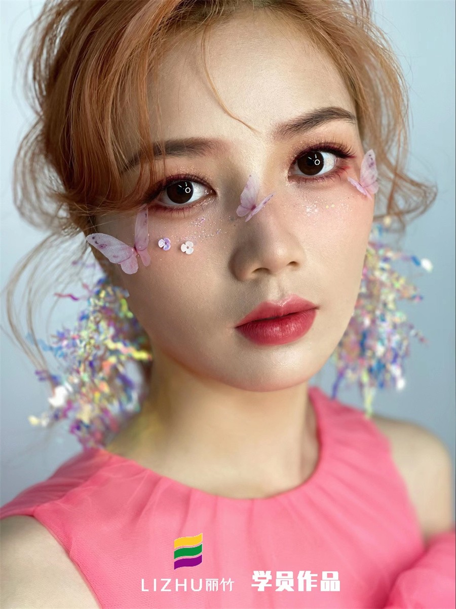 南寧彩妝培訓(xùn)名校、南寧新娘妝造型培訓(xùn)學(xué)校學(xué)員作品--唯美蝴蝶妝容:靚麗且清透的眼妝,被五彩斑斕的蝴蝶點綴,搭配色彩亮眼的大耳飾,產(chǎn)生了很強(qiáng)的視覺效果,讓人過目不忘之余。如果你想零基礎(chǔ)學(xué)新娘妝,南寧老牌化妝培訓(xùn)(麗竹化妝培訓(xùn))-南寧化妝培訓(xùn)班,老師手把手教學(xué),作品新潮,歡迎來電咨詢。