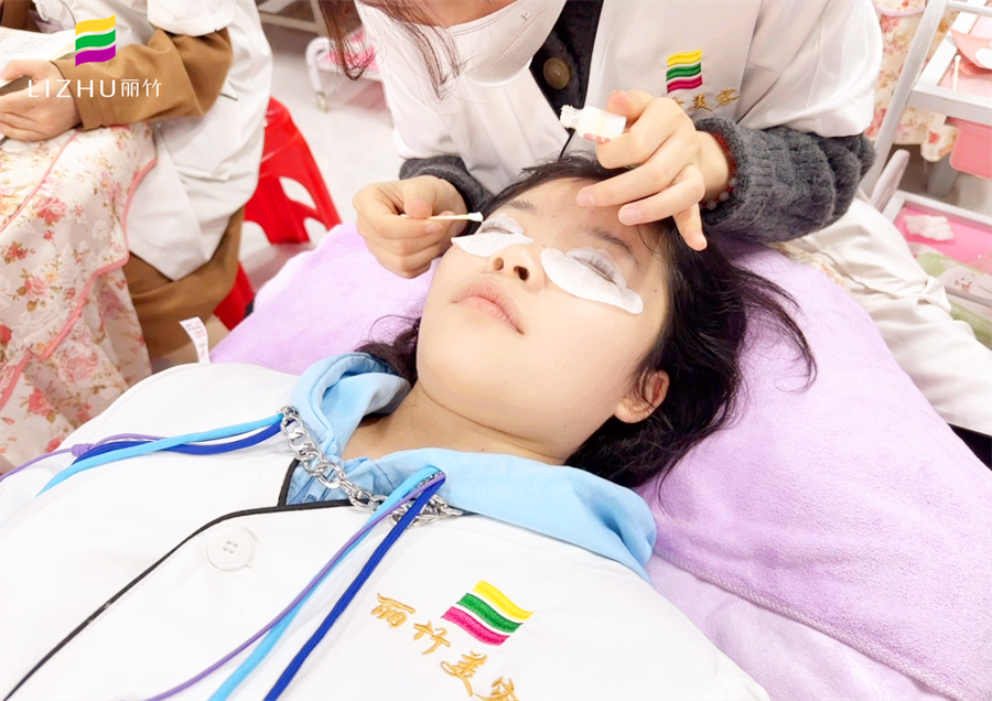 南寧美容學(xué)校專業(yè)學(xué)員練習(xí)眼部護(hù)理步驟