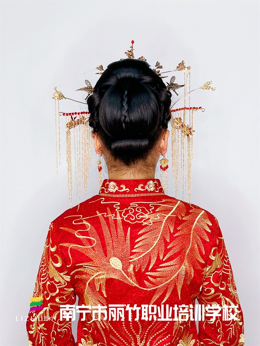 中式新娘發(fā)型,廣西化妝盤發(fā)學(xué)校演繹中式之美