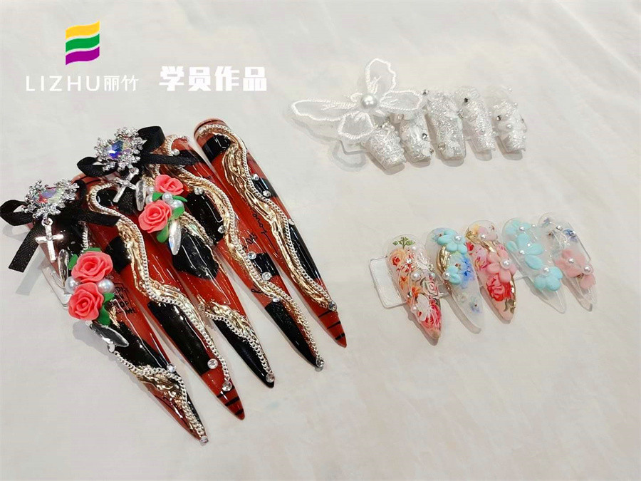 廣西美甲學(xué)校在哪里?請(qǐng)到麗竹美甲學(xué)校參觀作品---雕花設(shè)計(jì)美甲(一)
