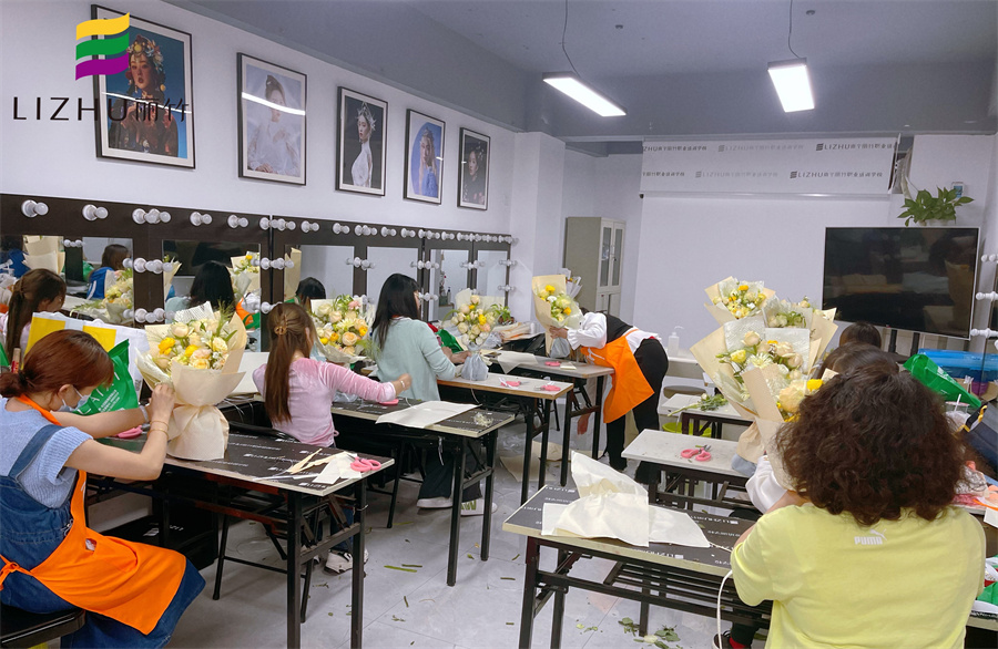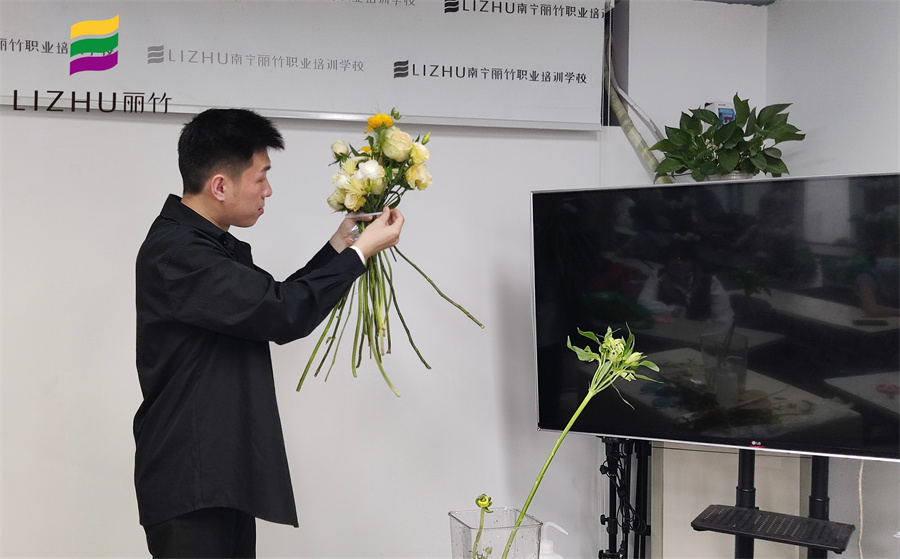 南寧培訓插花基礎、南寧花藝培訓專業(yè):花朵的配色也是決定花束好壞的重要因素之一。在南寧花藝插花培訓學校-麗竹花藝插花培訓學校-南寧花藝學習班課堂上,玉老師正在為學員們講解同色花系的選擇。如果你是零基礎學花藝的小白,想要了解全面且專業(yè)的花束配色知識以及挑選標準,還需要你到南寧花藝師學校去學習,這樣才能學到想要的知識和技術。