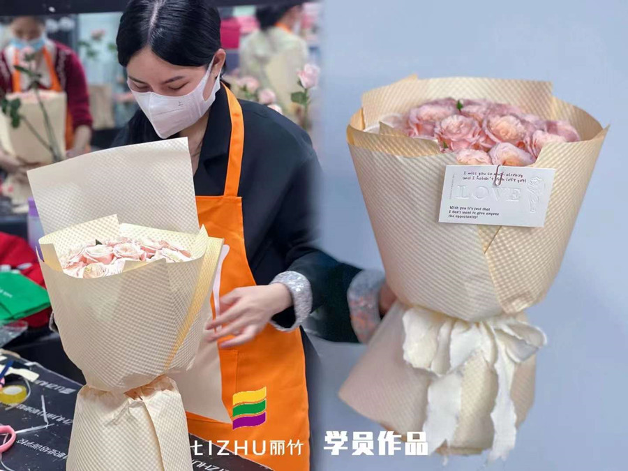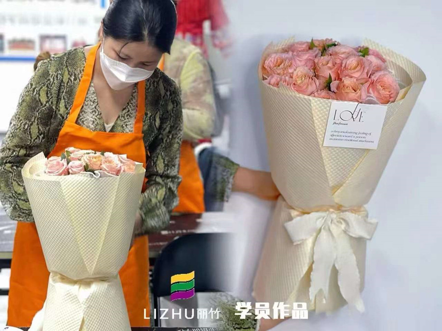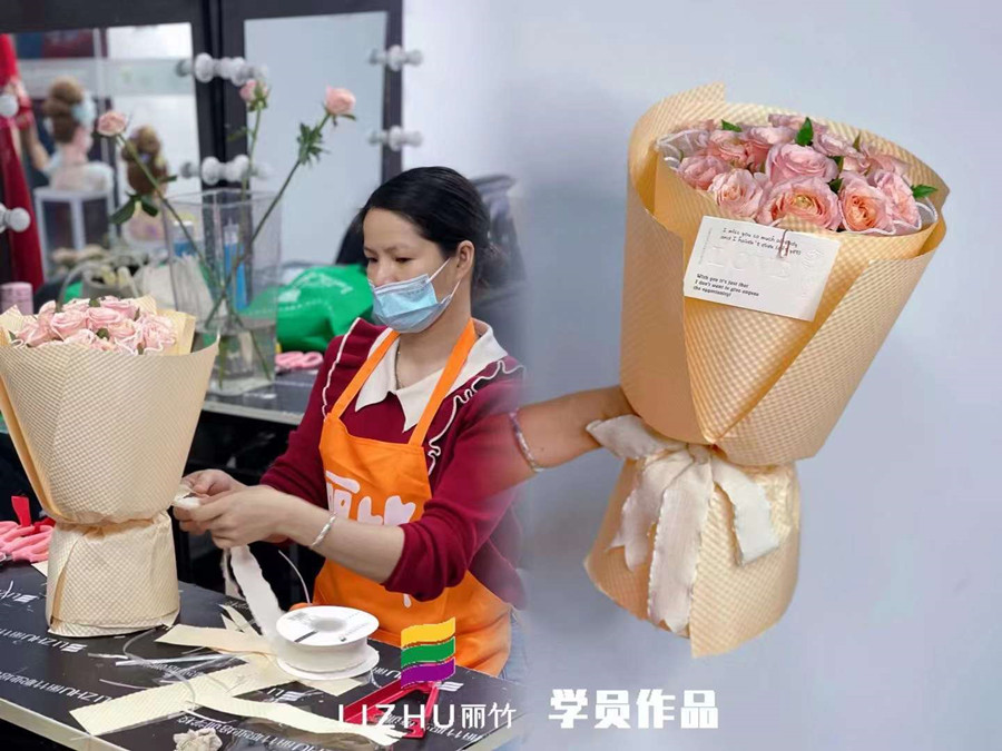 南寧花藝學(xué)校推薦---麗竹花藝學(xué)校學(xué)員-清新圓形大花束(四