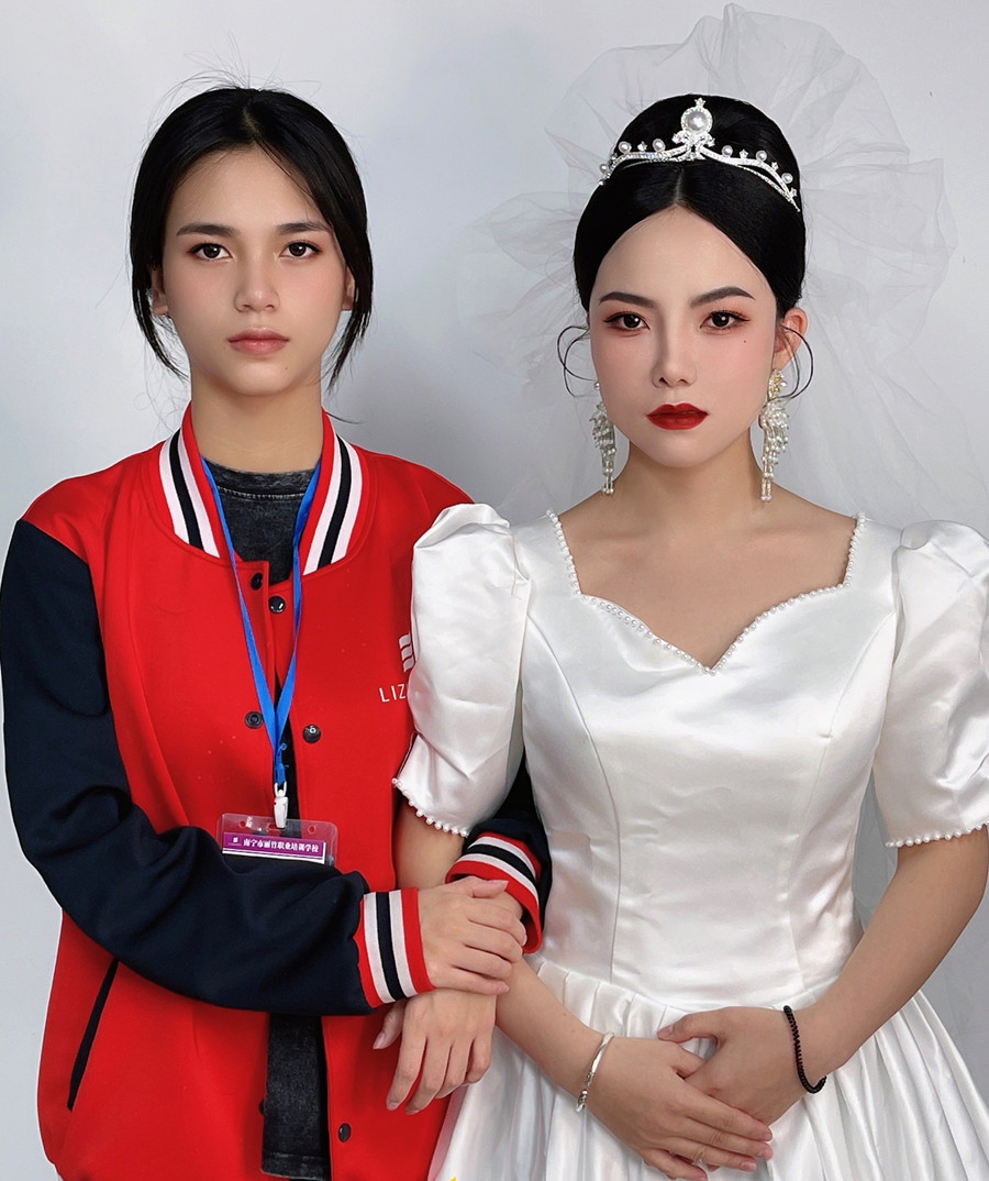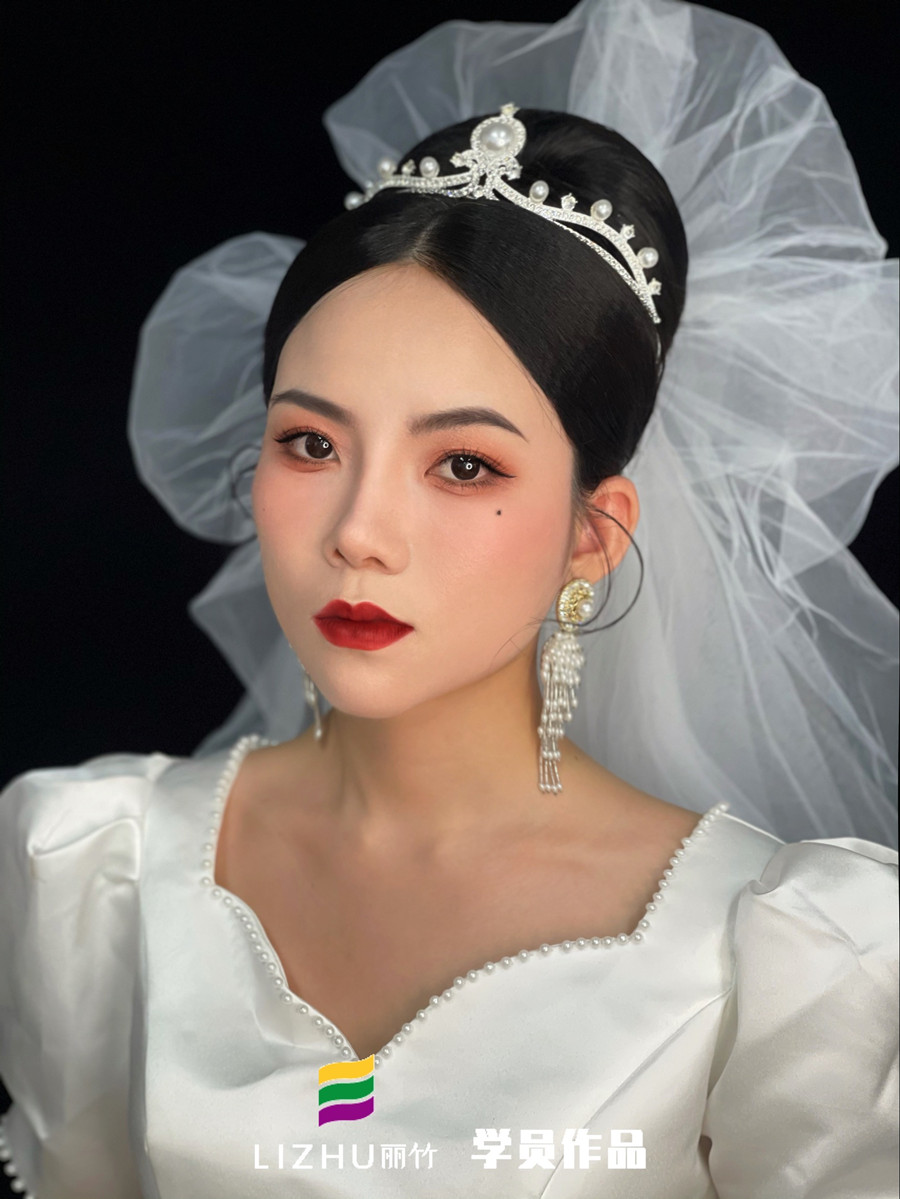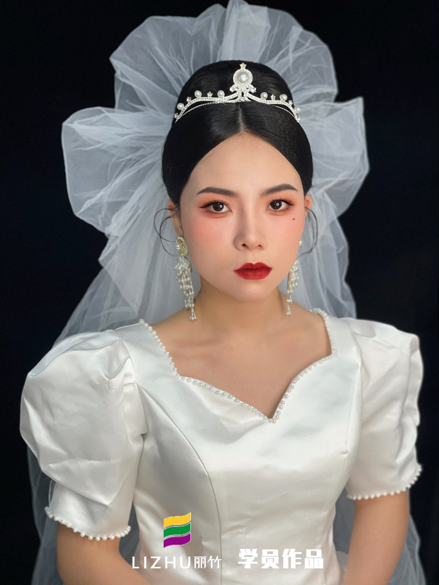 麗竹學(xué)校為期2個月的化妝培訓(xùn)現(xiàn)在已經(jīng)迎來畢業(yè)季,在這段時間里,學(xué)員們由零起步開始學(xué)習(xí),直到現(xiàn)在已經(jīng)可以獨立完成整個妝容造型的打造。下面,就一起來看看南寧彩妝造型學(xué)校學(xué)員寧婉茜的畢業(yè)作品---蓬蓬頭紗新娘造型吧!