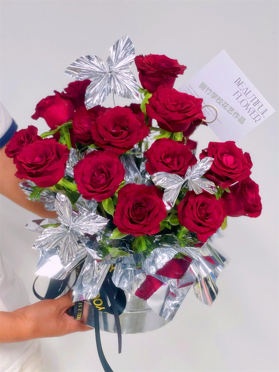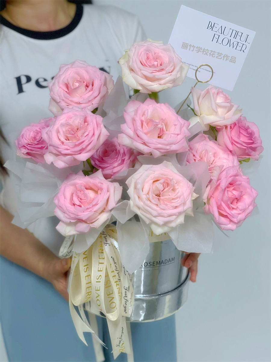 抱抱桶花束,南寧花藝零基礎(chǔ)培訓(xùn)班作品欣賞