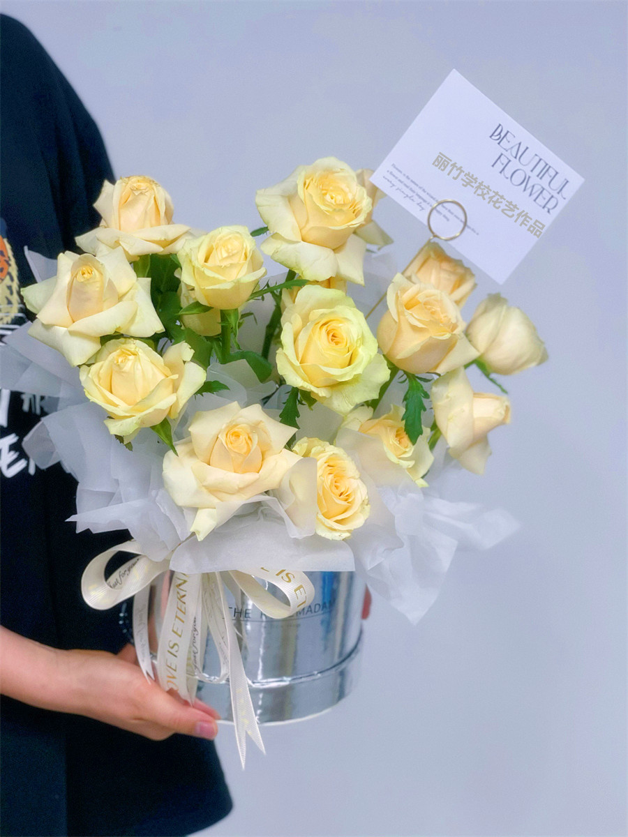 南寧學(xué)習(xí)插花、南寧培訓(xùn)鮮花藝術(shù):南寧花藝零基礎(chǔ)培訓(xùn)班-麗竹花藝學(xué)校的課程已經(jīng)浪漫落幕。學(xué)員們也做出了令自己滿意的花藝作品。下面就和我們一起看看南寧花藝插花職業(yè)學(xué)校學(xué)員們的抱抱桶花束作品吧!如果你對(duì)花藝感興趣,想知道南寧哪里可以學(xué)花藝?麗竹學(xué)校常年開設(shè)花藝培訓(xùn)班,作品時(shí)尚充滿創(chuàng)意,