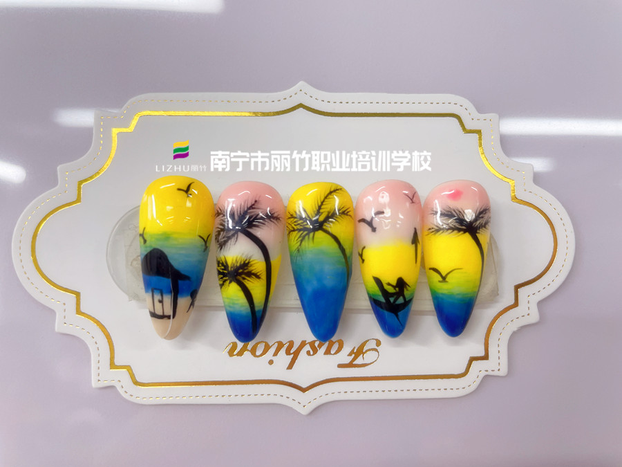學(xué)美甲在南寧、南寧培訓(xùn)美甲師:通過自然的暈染過度以及細(xì)致彩繪描畫,再配以裝飾點綴,南寧美甲學(xué)校畢業(yè)班-南寧美甲師造型班學(xué)員們繪制的海洋風(fēng)美甲就完成啦!要是你也對美甲技術(shù)感興趣,就趕緊趁著南寧美甲培訓(xùn)機(jī)構(gòu)學(xué)費特惠活動還沒有結(jié)束,聯(lián)系我們預(yù)定學(xué)習(xí)席位吧!
