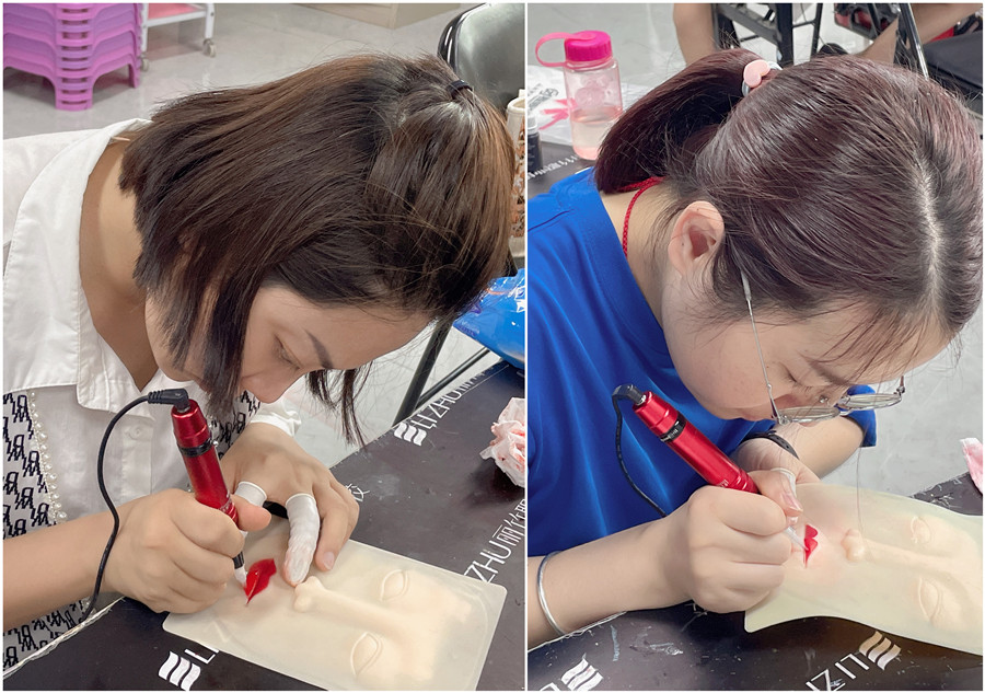 零基礎學紋繡在廣西、廣西紋唇教學:經過前面對眉眼唇的理論以及紙上練習,廣西眉眼唇學校-麗竹眉眼唇學校的同學們現(xiàn)在進入到了仿皮紋唇練習。廣西紋繡培訓-麗竹國際紋繡大師班本期課程已經進入尾聲,同學們也即將結束在仿皮上進行眉眼唇的練習,讓我們共同期待同學們接下來進入到紋繡真人實操的表現(xiàn)吧!