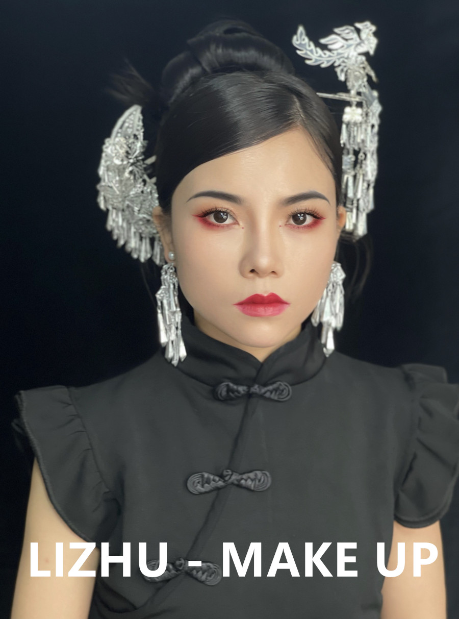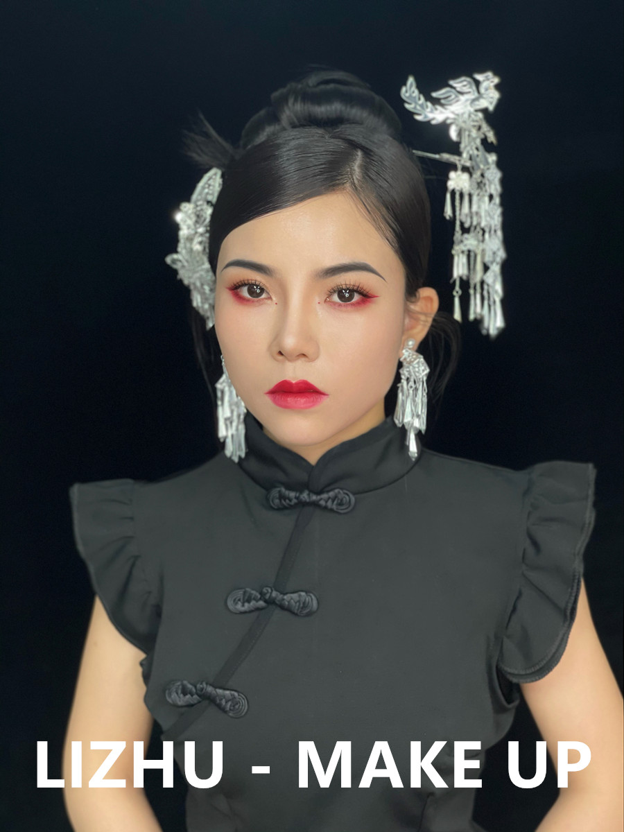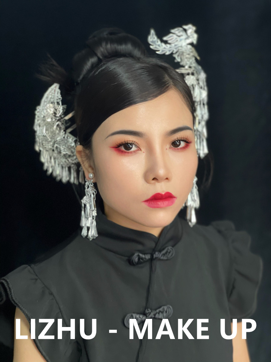 南寧化妝彩妝造型培訓、南寧學新娘寫真作品:國風造型:少數風情的銀質珠釵發(fā)飾,俏皮簡約的高聳盤發(fā)造型,玫紅眼影與唇妝的風情演繹,搭配改良版中式黑色旗袍,好一個優(yōu)雅韻味的國風造型。無論你是想為自己學化妝,還是想以此謀生,都歡迎先通過下面的方式關注南寧美妝學校-南寧化妝師培訓班獲取到校參觀,試聽的名額,滿意之后在報名!