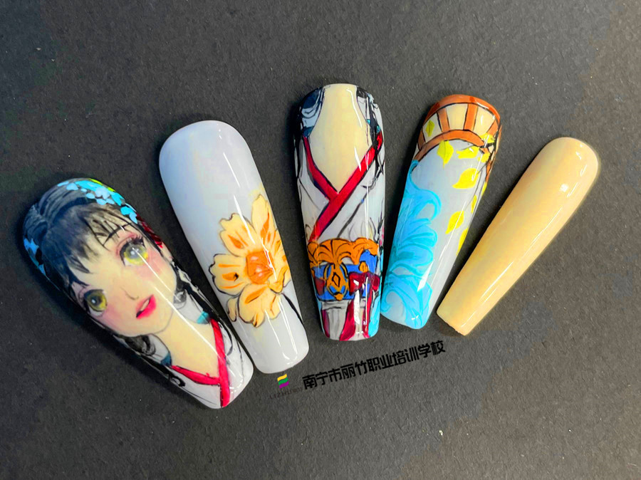 廣西美甲培訓(xùn)作品---古風(fēng)人物彩繪美甲(二)