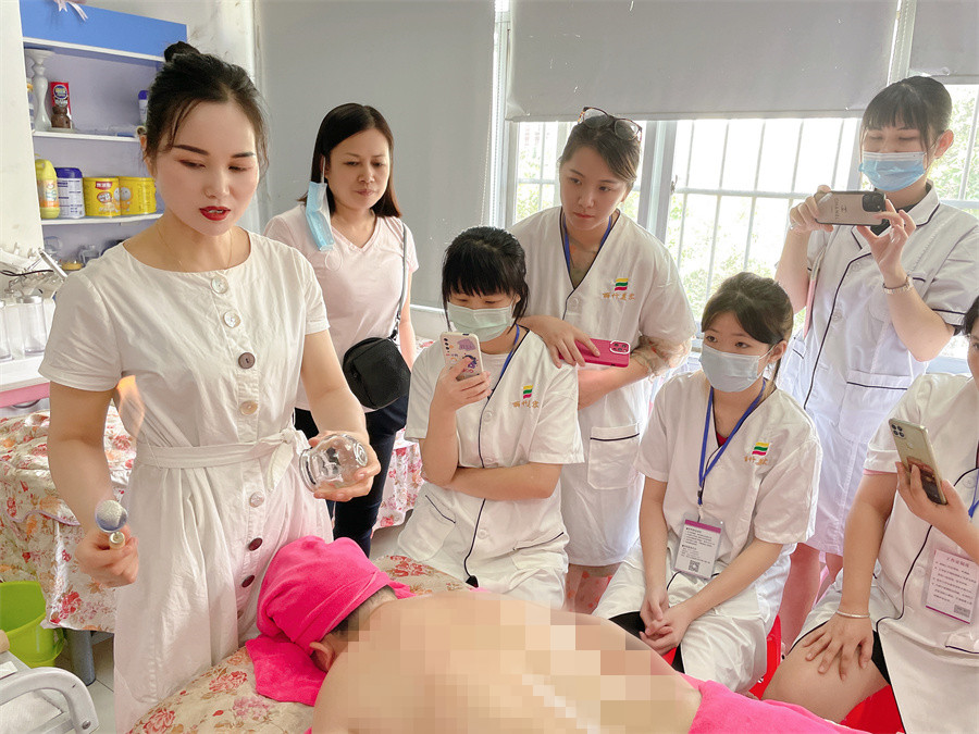 在今天南寧美容美體師培訓(xùn)班的課堂上,麗竹美容培訓(xùn)班的韋老師正在給同學(xué)們演示正確拔罐的手法示范,和我們一起去看看吧!
