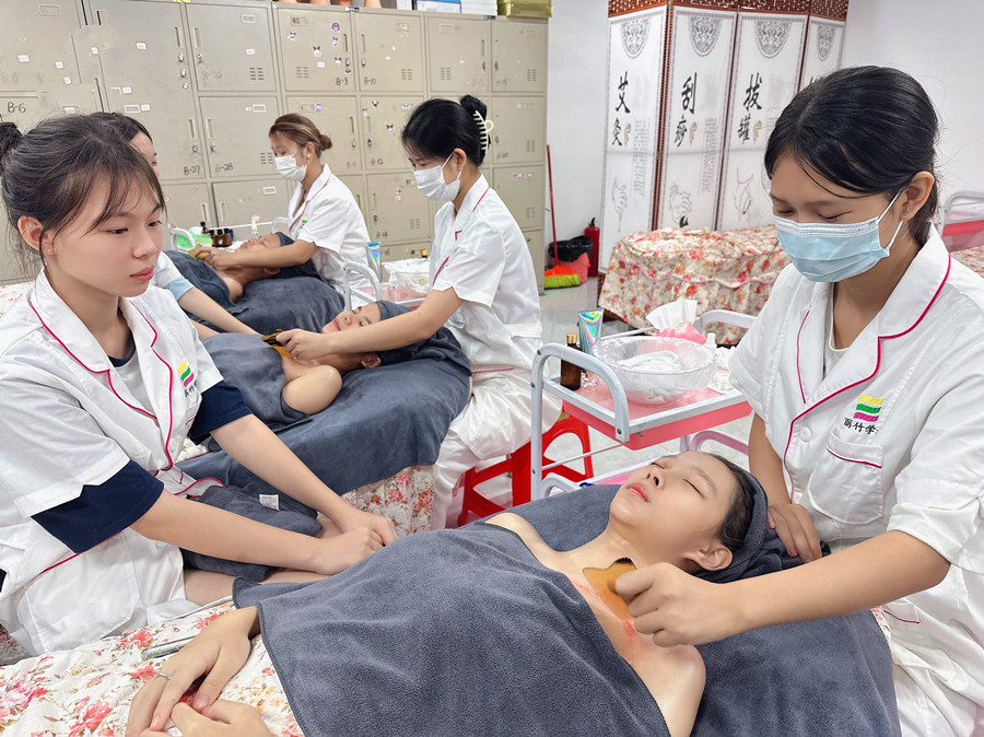 廣西美容美體師:在今天的廣西美容課堂實(shí)訓(xùn)練習(xí)中,和廣西美容培訓(xùn)班的同學(xué)們跟著老師一起去學(xué)習(xí)下肩頸刮痧的好處吧!此外,如果你想知道廣西哪里可以學(xué)經(jīng)絡(luò)養(yǎng)生?歡迎了解廣西美容專業(yè)培訓(xùn)學(xué)校 -麗竹學(xué)校-中醫(yī)經(jīng)絡(luò)養(yǎng)生全科班的課程內(nèi)容,同時(shí)也歡迎大家到校參觀和試聽(tīng)。
