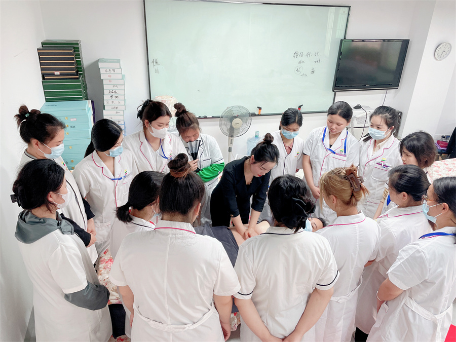 南寧美容美體培訓(xùn)-老師正在進(jìn)行腹部揉按手法示范