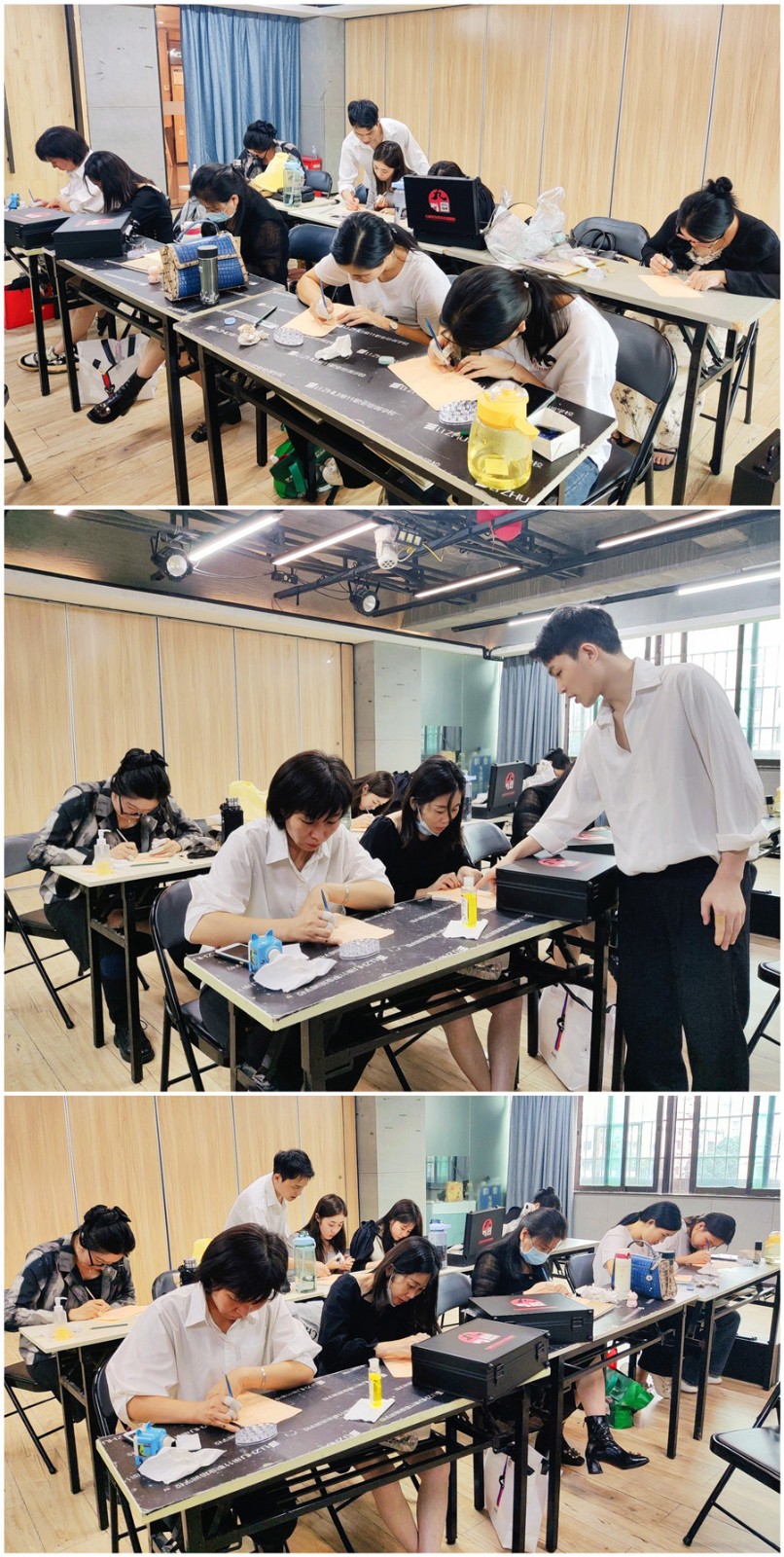 為期7天的《紋繡造型全能大師班》的課程已經(jīng)過半,同學(xué)們也在學(xué)習(xí)了色料的知識后,開始在仿皮上進(jìn)行眉眼唇的填色練習(xí),讓我們共同等待同學(xué)們進(jìn)行真人實(shí)操的練習(xí)吧!