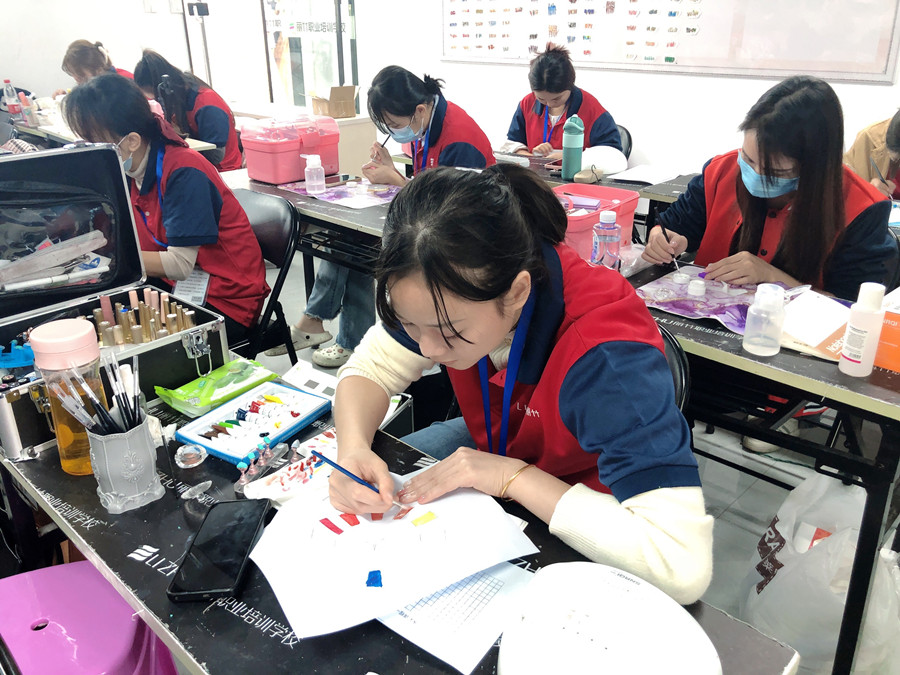 廣西美甲師、廣西美甲學(xué)習(xí)今天,廣西美甲職業(yè)技術(shù)學(xué)校的老師正在教授同學(xué)們常用的美甲色彩搭配方法,感興趣的你趕緊和廣西美甲進(jìn)修班的同學(xué)們一起跟著老師學(xué)習(xí)廣西美甲專業(yè)課程吧!