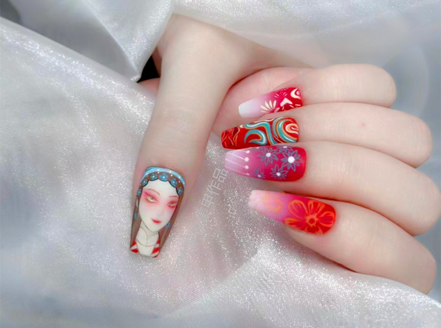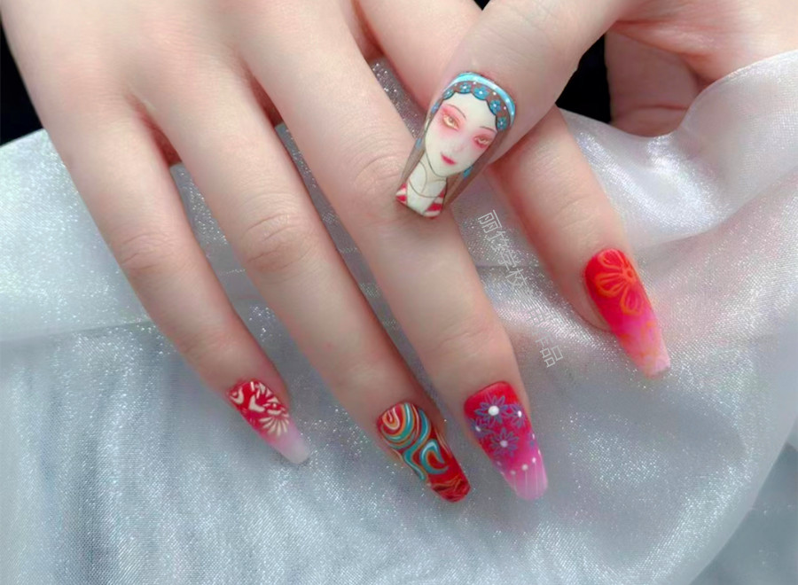 南寧美甲進修(麗竹美甲培訓)作品---國風花旦美甲(一)