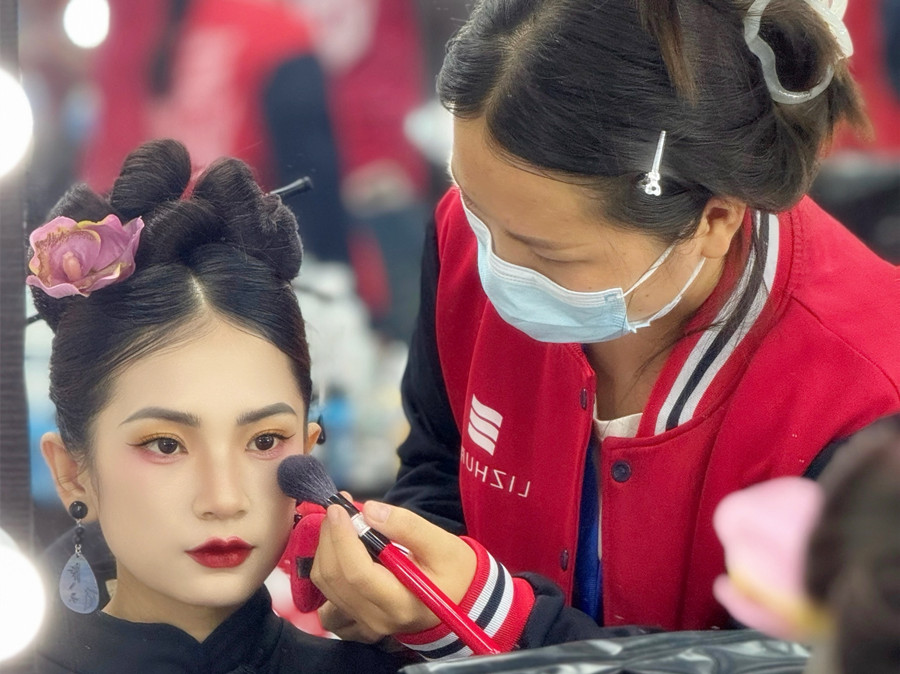 廣西化妝培訓推薦、廣西化妝學校排名:都說老祖宗留下的,都是無可復制的美。這話用在化妝技術上同樣也適用。婉約柔美的中式風格,加上現(xiàn)代化的妝容的錦上添花,趕緊和我們一起來看看廣西化妝職業(yè)培訓學校(麗竹化妝學校)同學的課堂化妝作品---新中式造型吧!