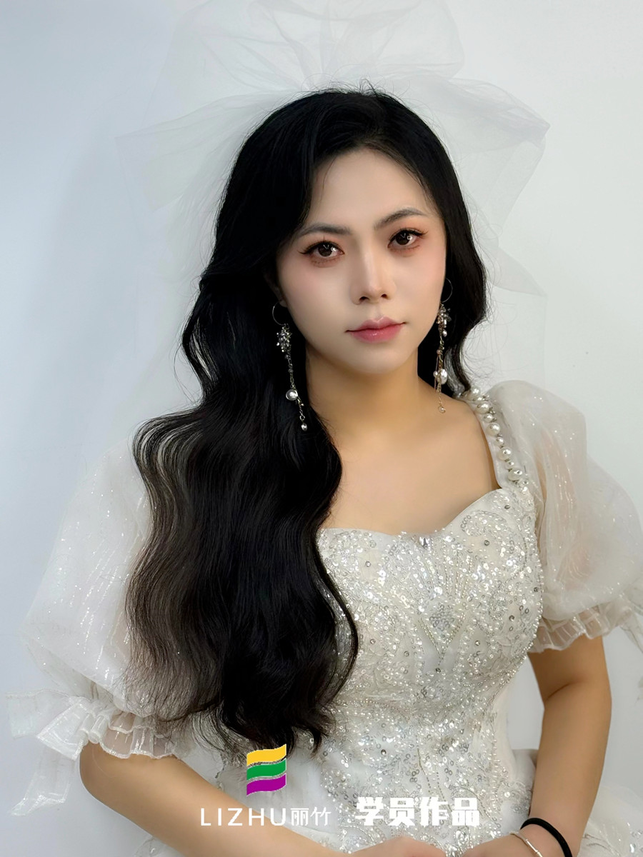 廣西培訓美妝師、廣西美妝造型培訓學校(麗竹美妝造型培訓學校)畢業(yè)學員陳星月作品---韓式披發(fā)新娘。如果你本就對可以變美的技術感興趣,那不如到廣西美業(yè)培訓職業(yè)學校(麗竹學校)去參觀校園,進班試聽,咨詢課程(美容,美發(fā),化妝,美甲,美睫,紋繡,花藝等時尚課程),滿意之后在報名吧!
