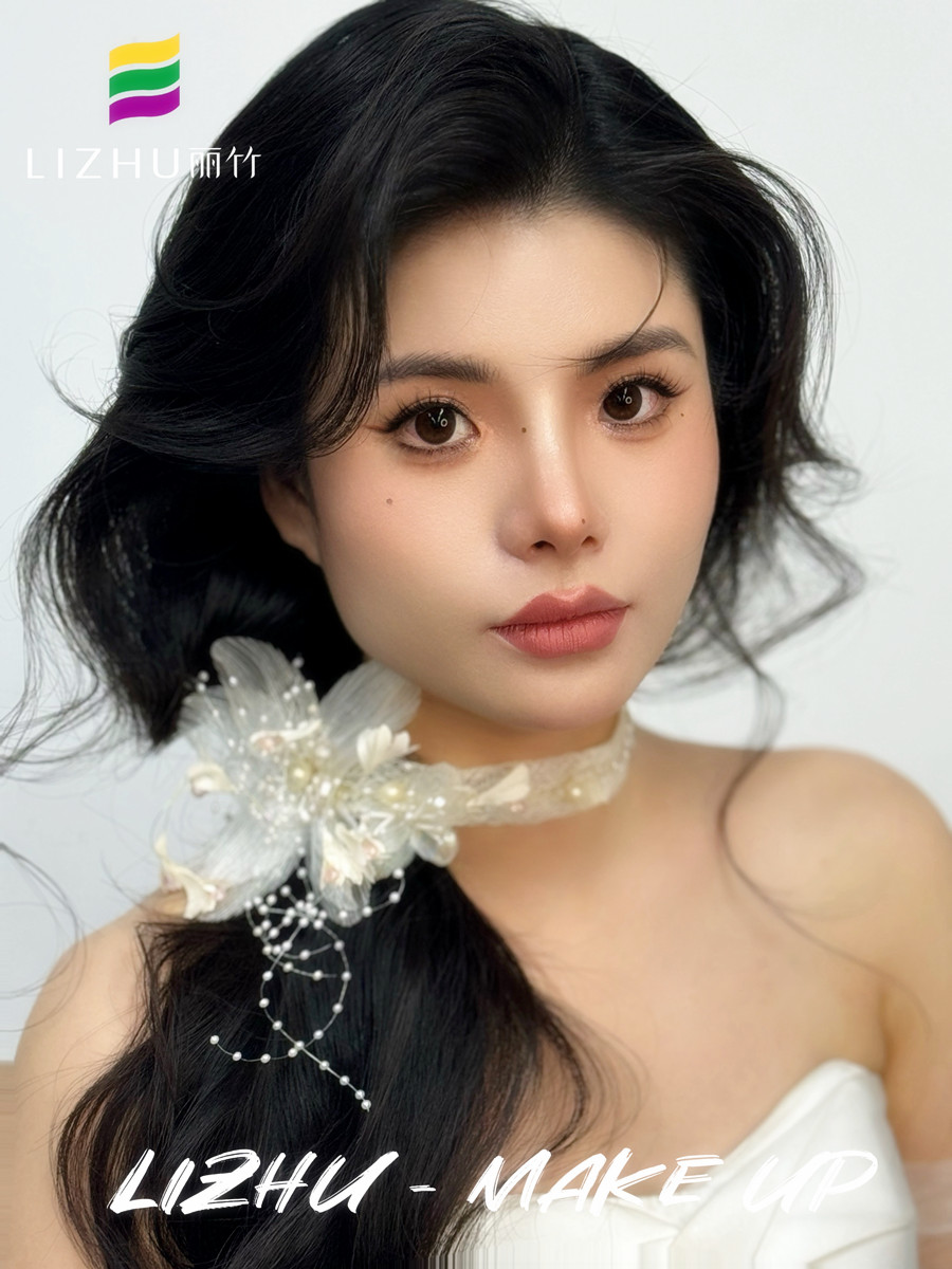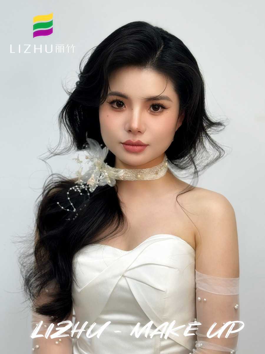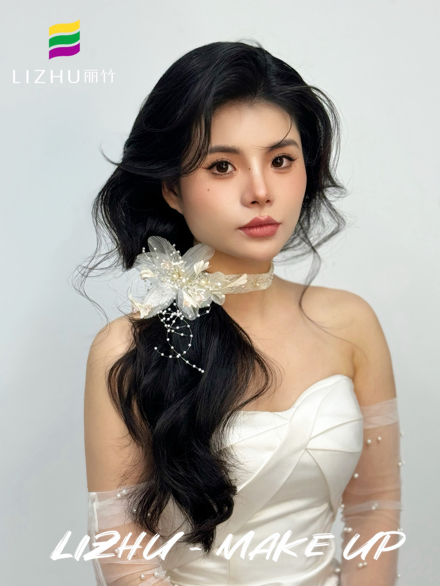 廣西學化妝影樓、廣西寫真化妝,廣西新娘妝跟妝培訓(麗竹寫真化妝培訓)--- 韓式側(cè)扎紋理新娘:氧氣清新的自然無痕妝容,優(yōu)雅隨意的紋理韓式卷發(fā),白色蕾絲珠花頭飾側(cè)扎發(fā),打造氣質(zhì)滿滿的元氣美少女。