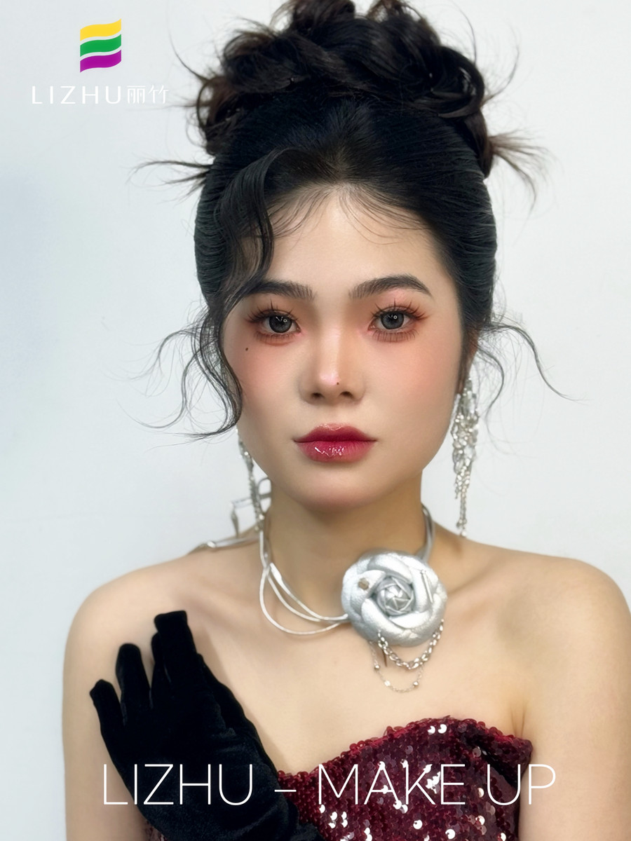 廣西彩妝化妝寫真、廣西化妝高彩、廣西學(xué)彩妝造型影樓(麗竹彩妝化妝學(xué)校)作品---千金禮服造型:極具質(zhì)感的妝容打造,蓬松自然高顱頂盤發(fā),銀色飾品的裝飾點(diǎn)綴,輕松拿捏豪門千金感!