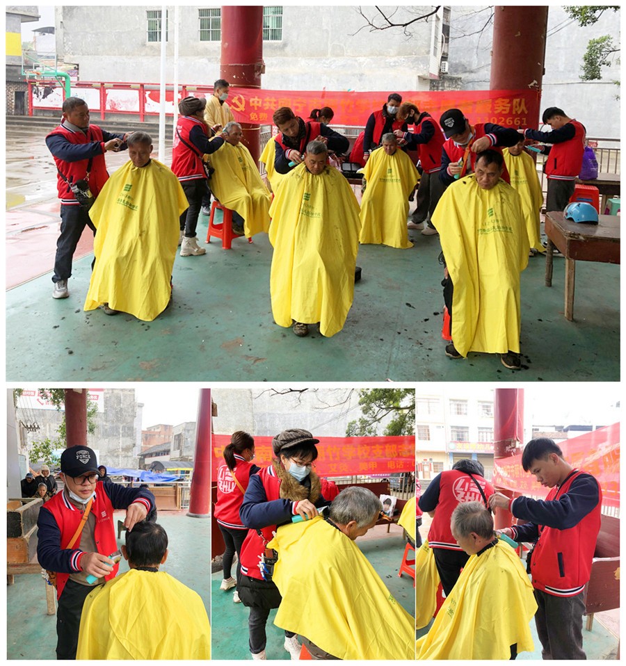南寧美發(fā)實踐外出、南寧理發(fā)社會實踐:南寧美發(fā)學(xué)校排行前三的南寧美發(fā)職業(yè)技術(shù)學(xué)校-南寧美發(fā)培訓(xùn)專業(yè)-麗竹美發(fā)學(xué)校志愿者服務(wù)隊立馬拿起理發(fā)工作,不顧嚴(yán)寒來到群眾身邊,為大家仔仔細(xì)細(xì)的進(jìn)行理發(fā)活動。