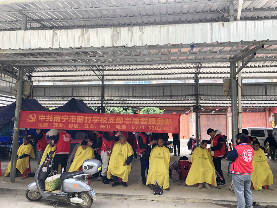 南寧美發(fā)社會實踐報告、南寧美發(fā)教學(xué)外出:霜凍籠罩在上空,呼呼刮來的冷風(fēng),連綿不斷的陰雨讓本就寒冷的氣溫變得更加刺骨難耐。但即便是在這樣的天氣下,南寧美發(fā)職校志愿者服務(wù)隊的同學(xué)們依舊走訪在各大周邊城鎮(zhèn),為群眾們進行免費理發(fā)服務(wù)。下面,就請跟著南寧美發(fā)造型培訓(xùn)(麗竹美發(fā)造型培訓(xùn))的鏡頭一起去看看同學(xué)們都去了哪些地方吧!