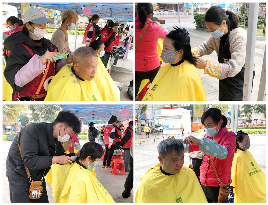 社區(qū)免費剪發(fā)、南寧美發(fā)學校義剪:2月2日正值中國傳統(tǒng)元宵節(jié),南寧美發(fā)職業(yè)學校(麗竹美發(fā)職業(yè)學校)的南寧美發(fā)專業(yè)的志愿者們在老師的帶領下積極參與“工會驛站 · 暖“新”服務季活動”,冒著嚴寒來到朝陽廣場為人民群眾提供免費理發(fā)活動。