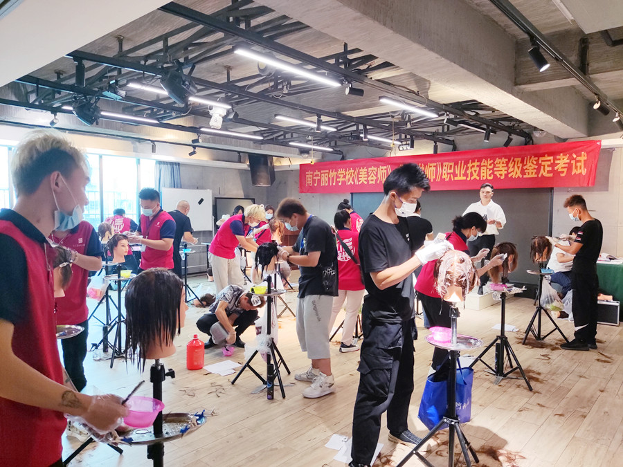 南寧麗竹學(xué)校考證班《美發(fā)師》鑒定考試部分花絮