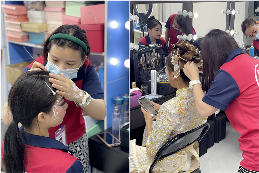 剛剛進入到化妝基礎班的時候,從認識化妝工具開始,然后到紙上設計妝容,學習基礎化妝技巧,編發(fā),扎發(fā),盤發(fā)等手法。雖然都是一些基礎學習,但是只要我們在規(guī)定時間完不成的,老師都會在課后加班,指導我們練習,直到我們在規(guī)定時間內(nèi)都能完成為止。